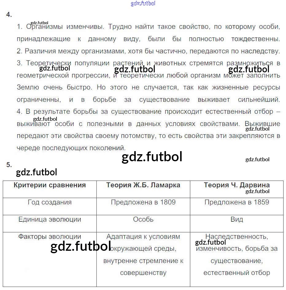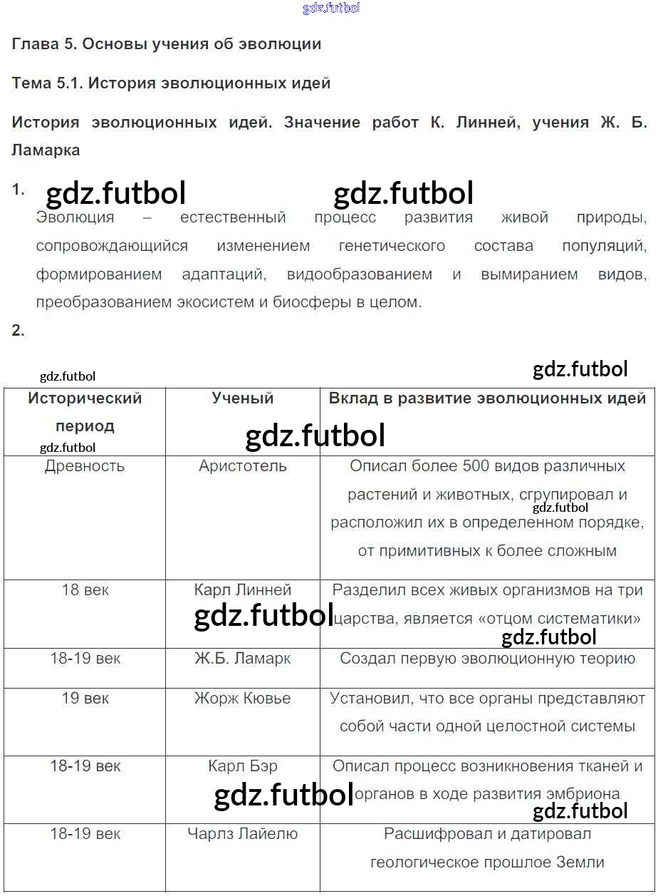 Готовые домашние задания по Биологии за 11 класс Пасечник Рабочая тетрадь УМК Базовый уровень 2017 ФГОС - Глава 5. Основы учения об эволюции Тема 1