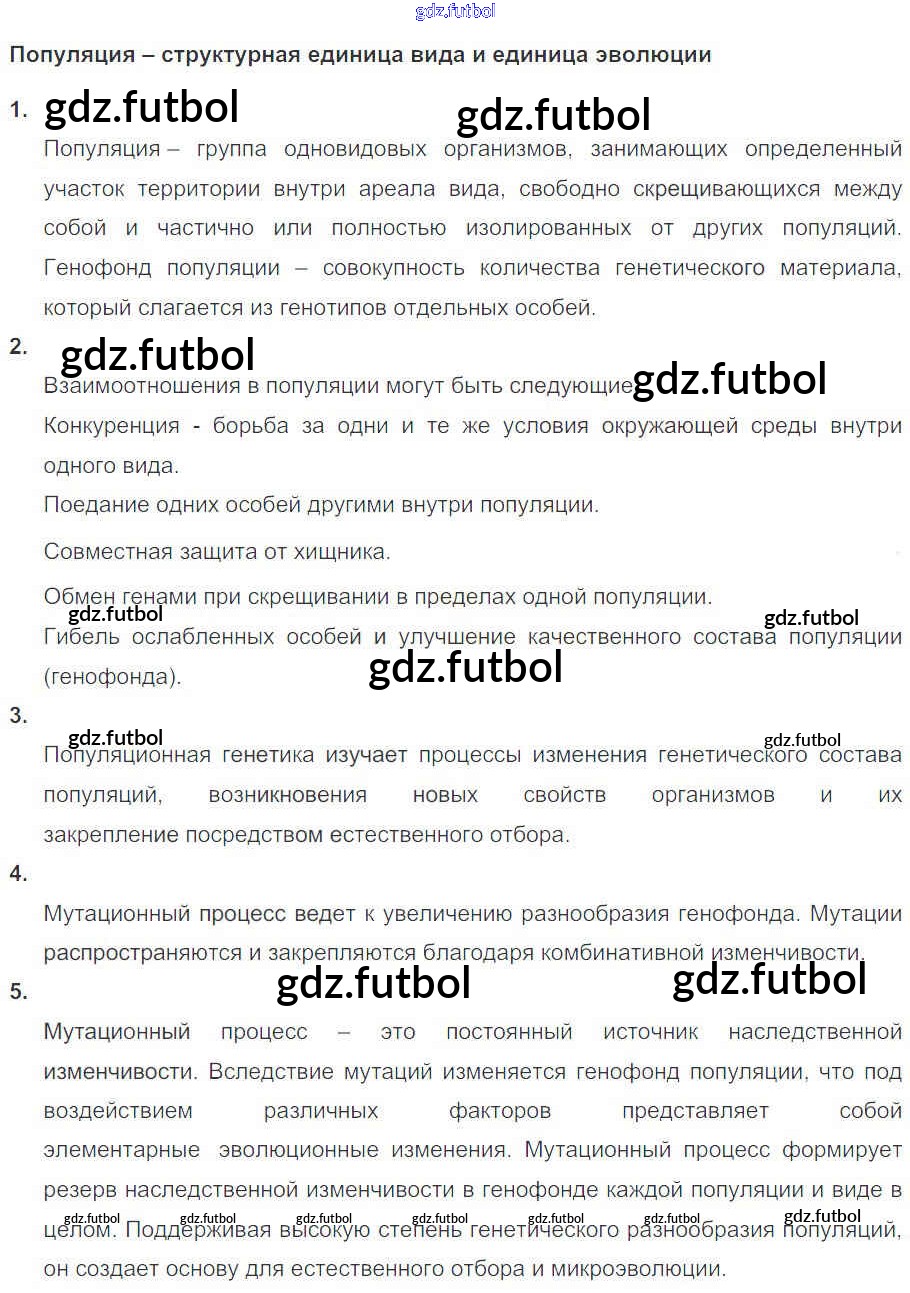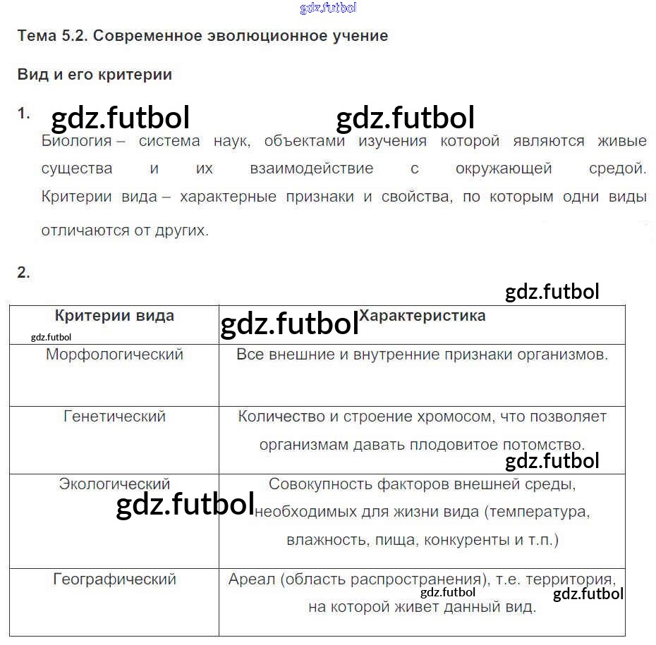 Готовые домашние задания по Биологии за 11 класс Пасечник Рабочая тетрадь УМК Базовый уровень 2017 ФГОС - Глава 5. Основы учения об эволюции Тема 2