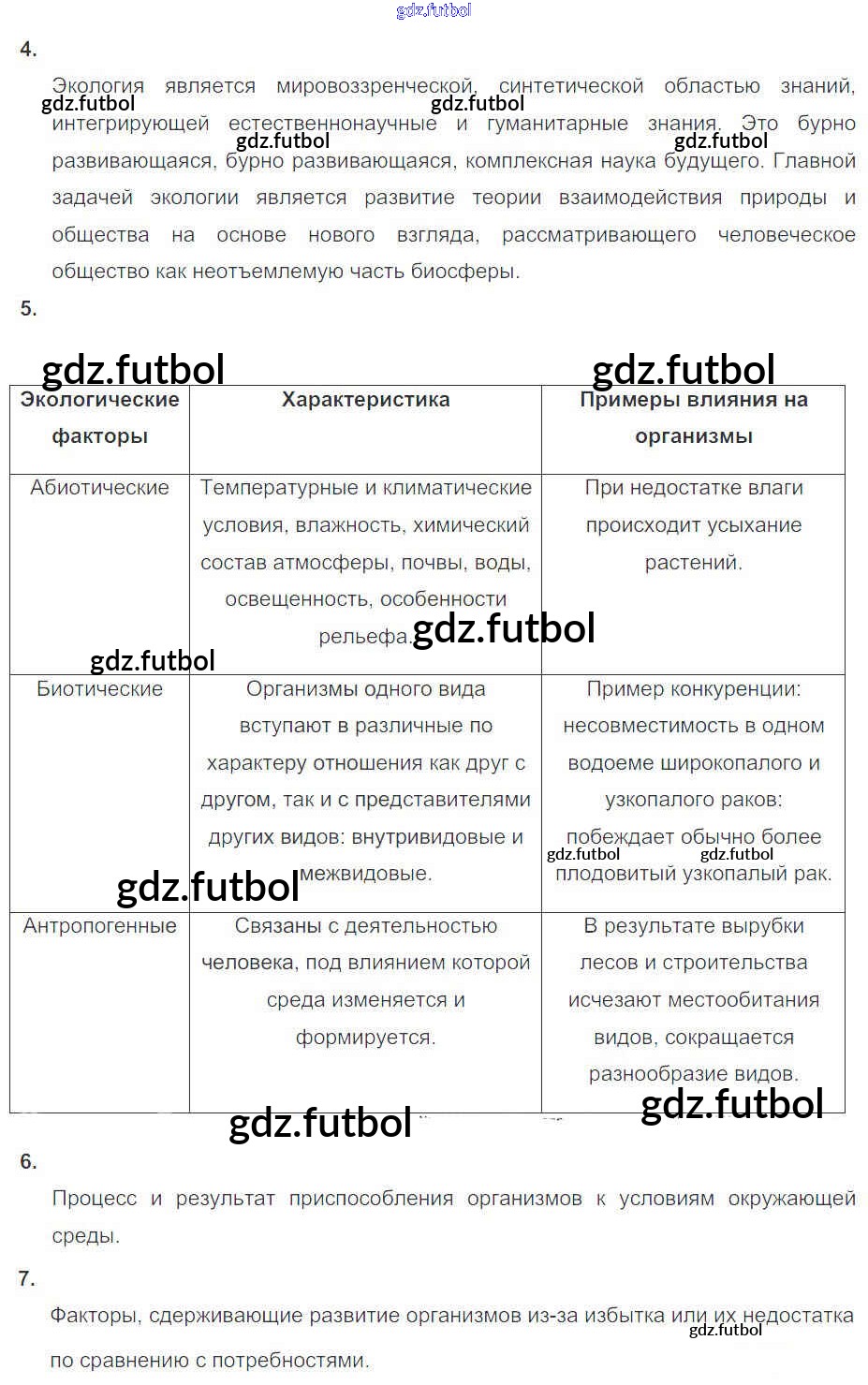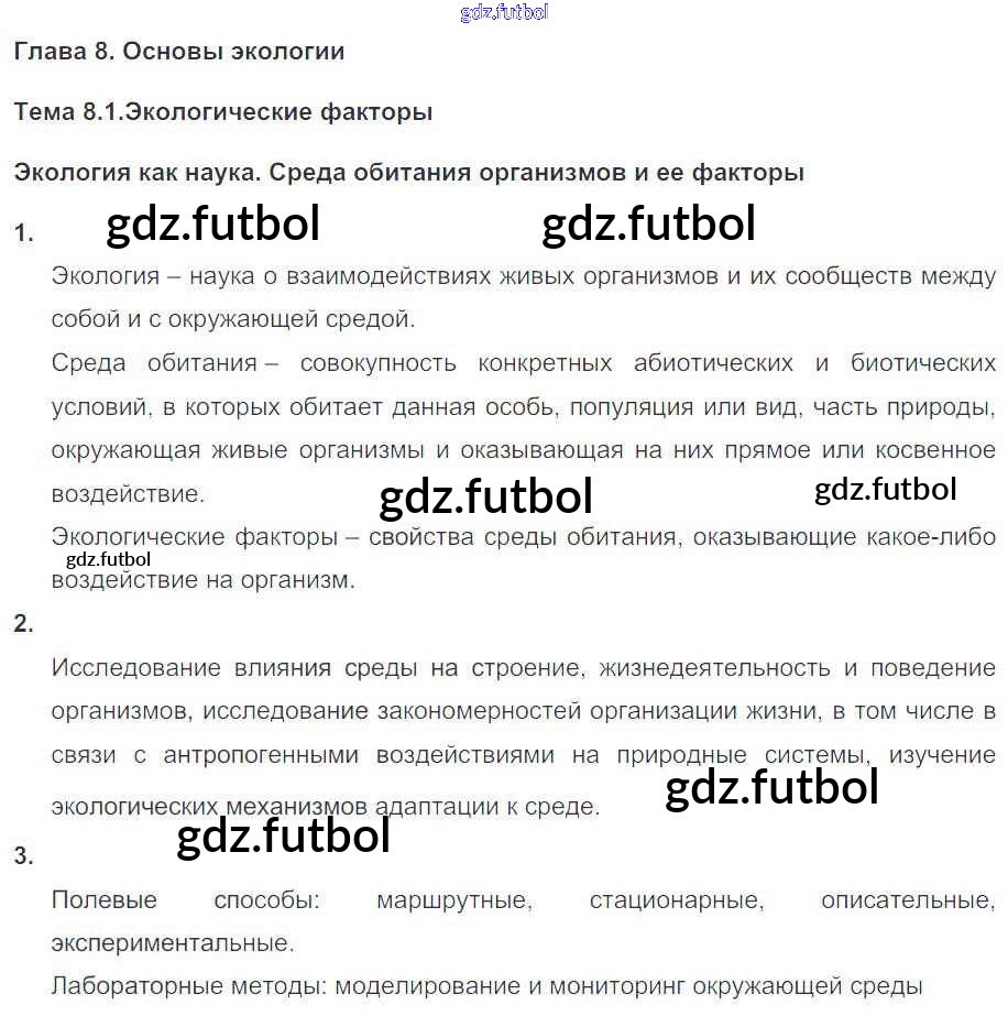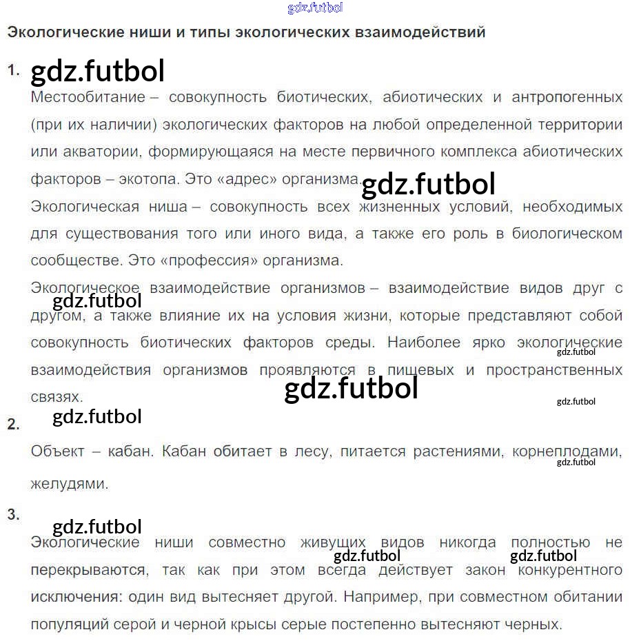 Готовые домашние задания по Биологии за 11 класс Пасечник Рабочая тетрадь УМК Базовый уровень 2017 ФГОС - Глава 8. Основы экологии Тема 1