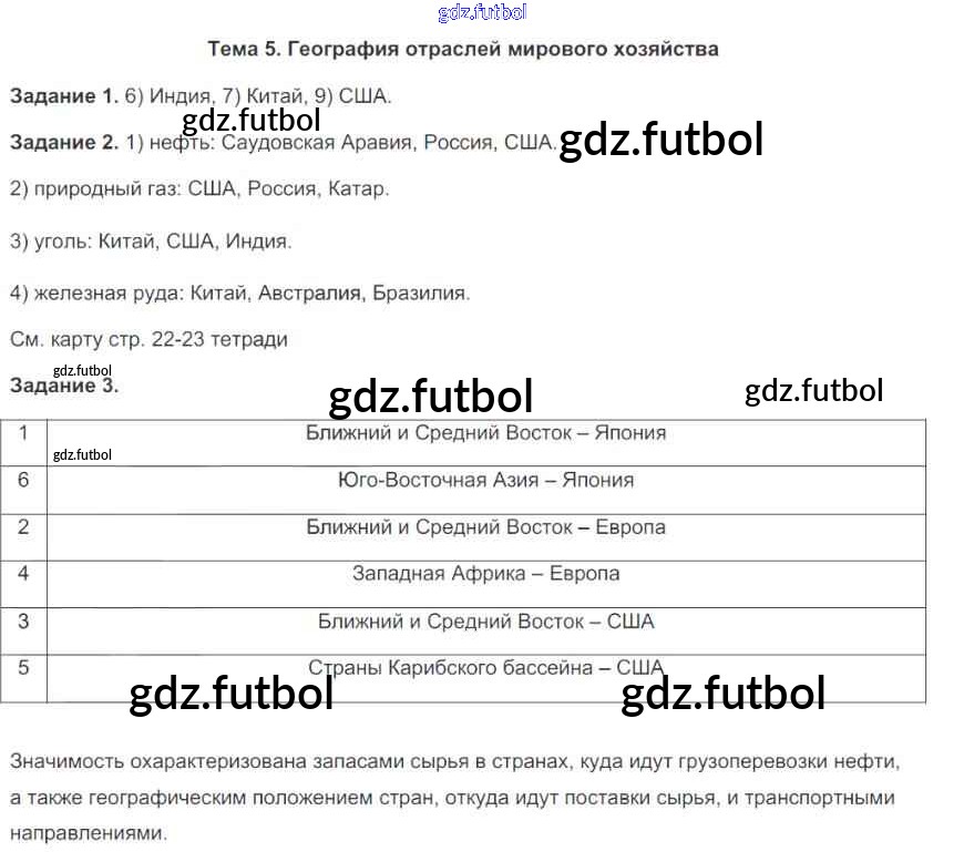 Готовые домашние задания по Географии за 11 класс Максаковский Рабочая тетрадь 2019 ФГОС - Тема 5. География отраслей мирового хозяйства (стр. 21-29) 21