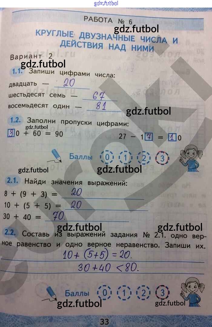 Готовые домашние задания по Математике за 2 класс Гусева Зачётные работы УМК 2016 ФГОС - Часть 1. Страницы 33