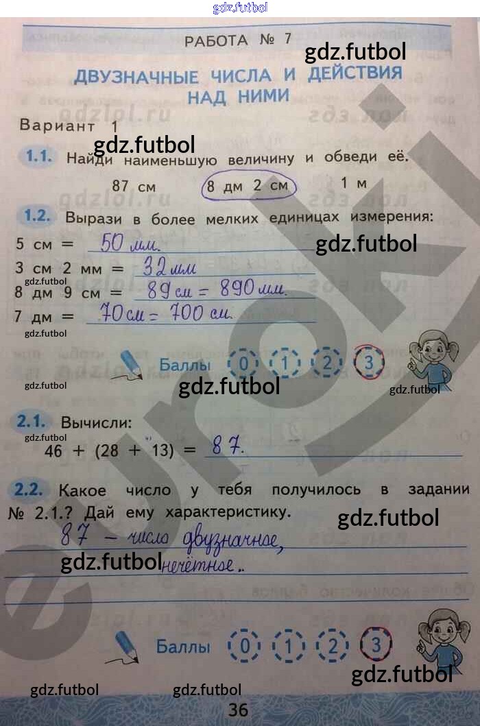 Готовые домашние задания по Математике за 2 класс Гусева Зачётные работы УМК 2016 ФГОС - Часть 1. Страницы 36