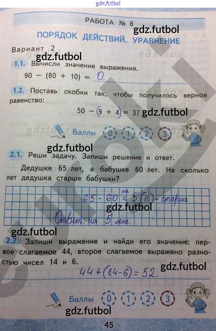 Готовые домашние задания по Математике за 2 класс Гусева Зачётные работы УМК 2016 ФГОС - Часть 1. Страницы 45