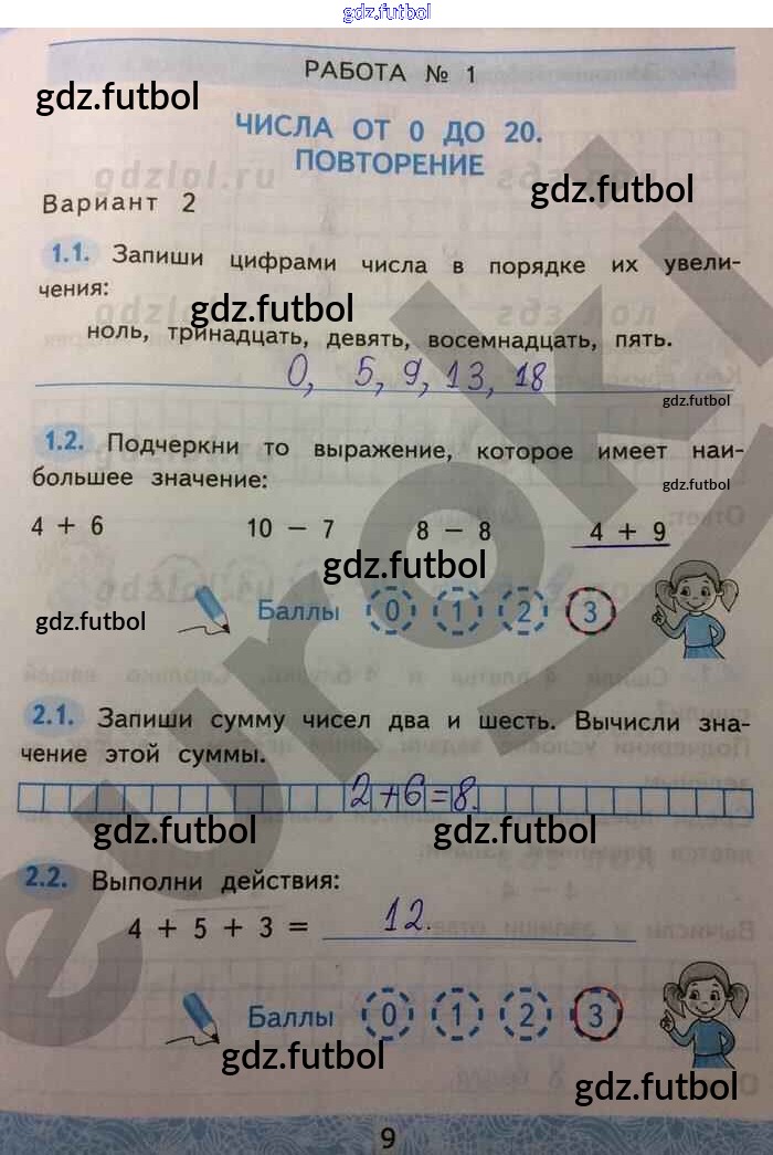 Готовые домашние задания по Математике за 2 класс Гусева Зачётные работы УМК 2016 ФГОС - Часть 1. Страницы 9