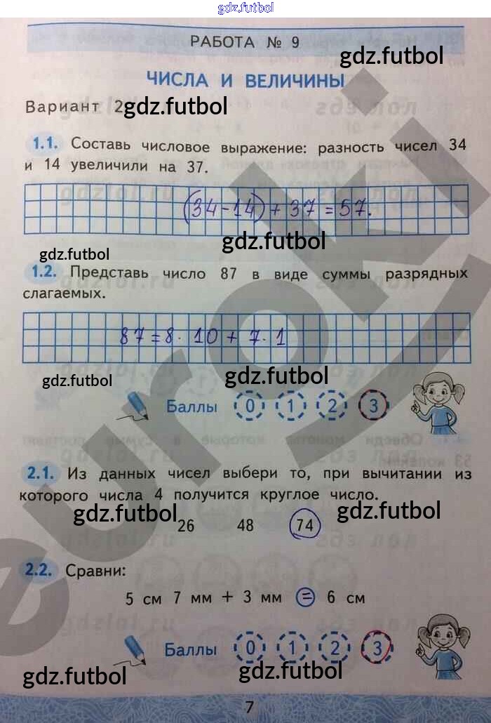 Готовые домашние задания по Математике за 2 класс Гусева Зачётные работы УМК 2016 ФГОС - Часть 2. Страницы 7