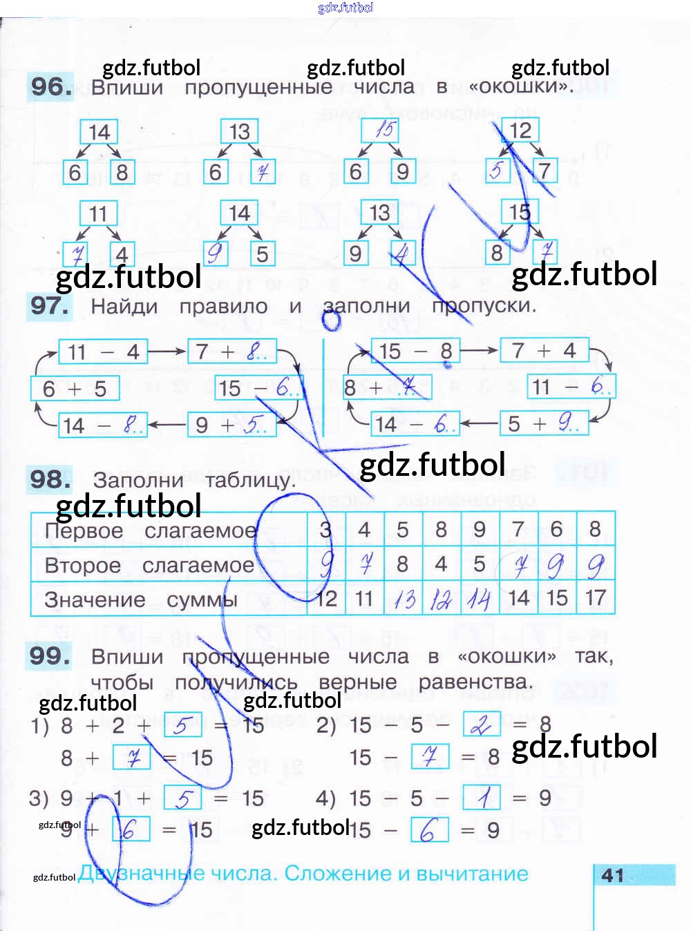Готовые домашние задания по Математике за 2 класс Истомина Рабочая тетрадь 2016 ФГОС - Часть 1. Страницы 41