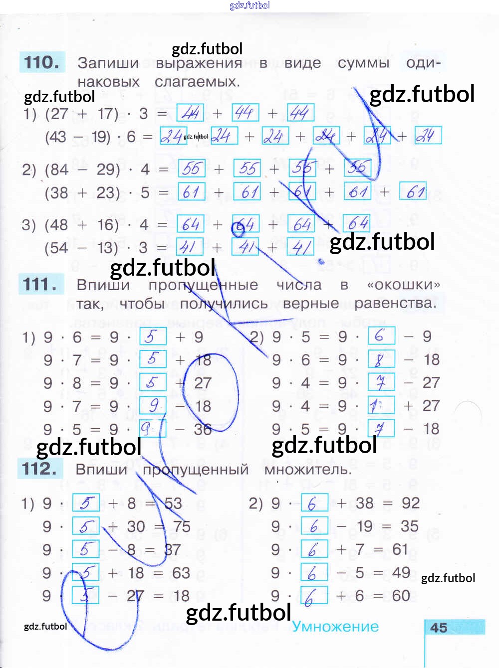 Готовые домашние задания по Математике за 2 класс Истомина Рабочая тетрадь 2016 ФГОС - Часть 2. Страницы 45