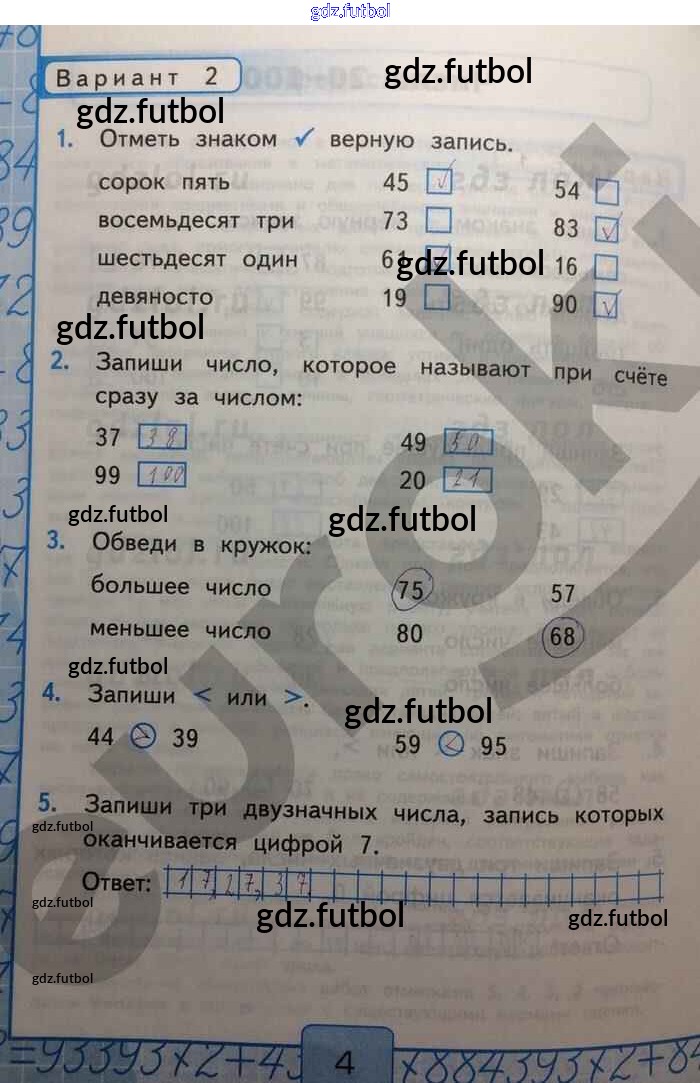 Готовые домашние задания по Математике за 2 класс Рудницкая Контрольные работы УМК 2017 ФГОС - Числа 20—100 Вар-2