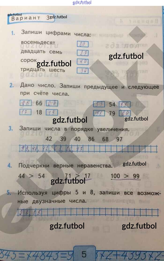 Готовые домашние задания по Математике за 2 класс Рудницкая Контрольные работы УМК 2017 ФГОС - Числа 20—100 Вар-3