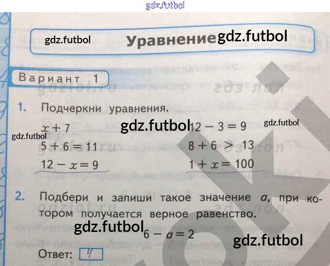 Готовые домашние задания по Математике за 2 класс Рудницкая Контрольные работы УМК 2017 ФГОС - Уравнение Вар-1