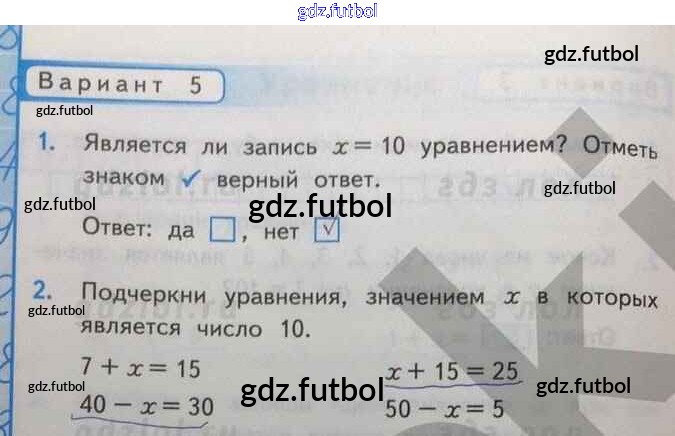 Готовые домашние задания по Математике за 2 класс Рудницкая Контрольные работы УМК 2017 ФГОС - Уравнение Вар-5