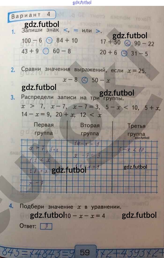Готовые домашние задания по Математике за 2 класс Рудницкая Контрольные работы УМК 2017 ФГОС - Итоговая контрольная работа Вар-4