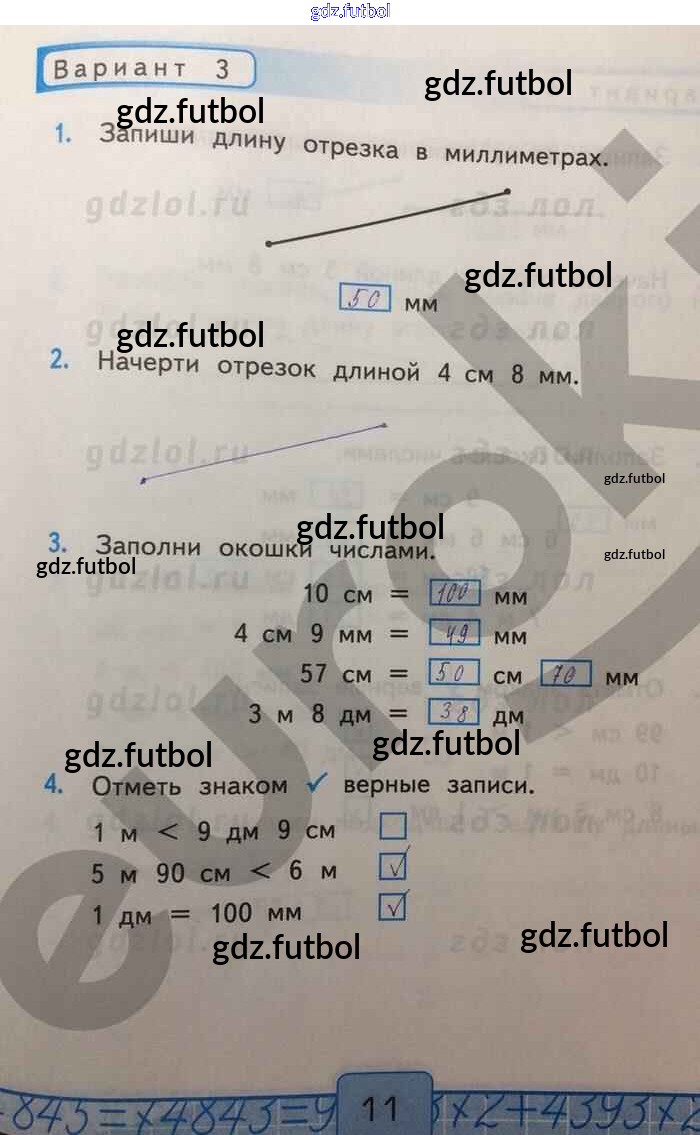 Готовые домашние задания по Математике за 2 класс Рудницкая Контрольные работы УМК 2017 ФГОС - Измерение длин Вар-3