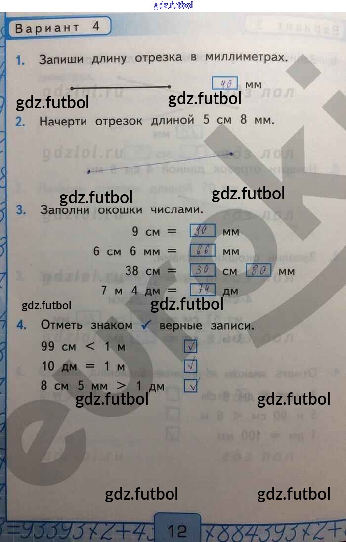 Готовые домашние задания по Математике за 2 класс Рудницкая Контрольные работы УМК 2017 ФГОС - Измерение длин Вар-4