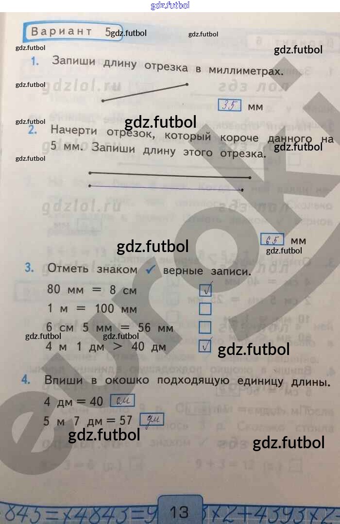 Готовые домашние задания по Математике за 2 класс Рудницкая Контрольные работы УМК 2017 ФГОС - Измерение длин Вар-5