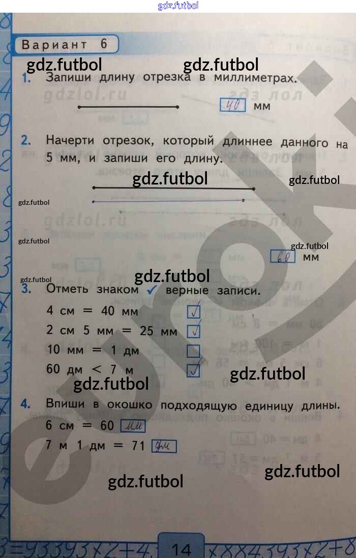 Готовые домашние задания по Математике за 2 класс Рудницкая Контрольные работы УМК 2017 ФГОС - Измерение длин Вар-6