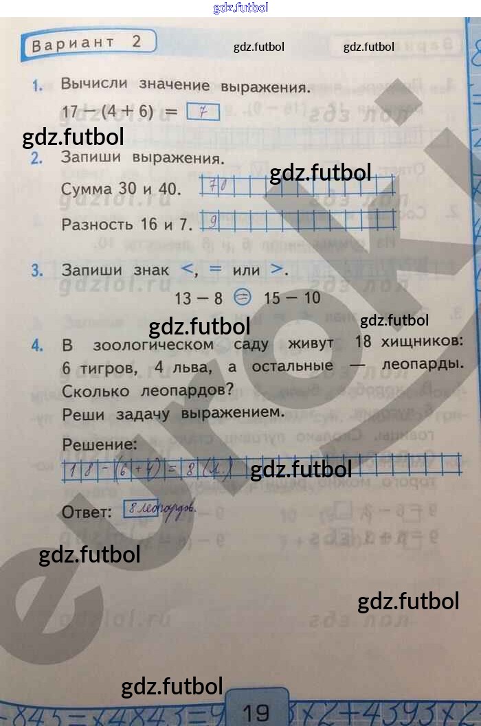 Готовые домашние задания по Математике за 2 класс Рудницкая Контрольные работы УМК 2017 ФГОС - Числовые выражения и их значения Вар-2