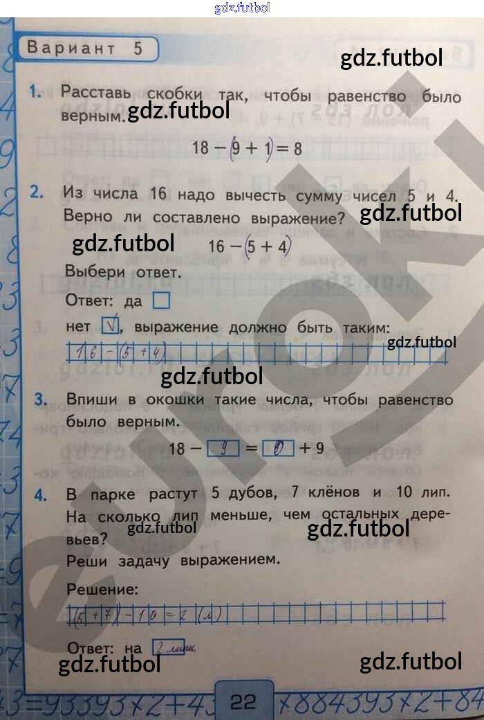 Готовые домашние задания по Математике за 2 класс Рудницкая Контрольные работы УМК 2017 ФГОС - Числовые выражения и их значения Вар-5