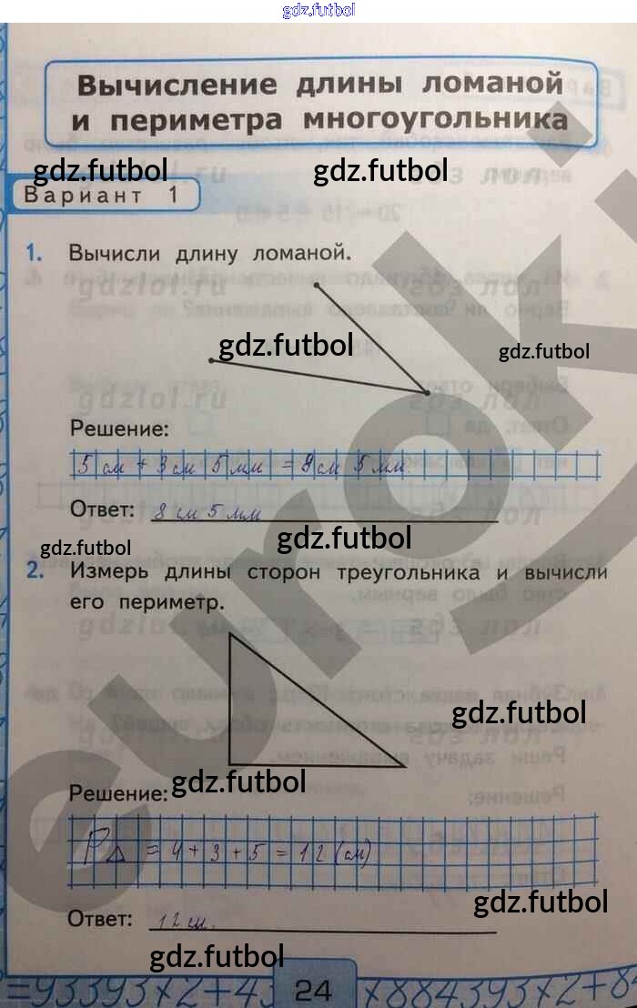 Готовые домашние задания по Математике за 2 класс Рудницкая Контрольные работы УМК 2017 ФГОС - Вычисление длины ломаной и периметра многоугольника Вар-1