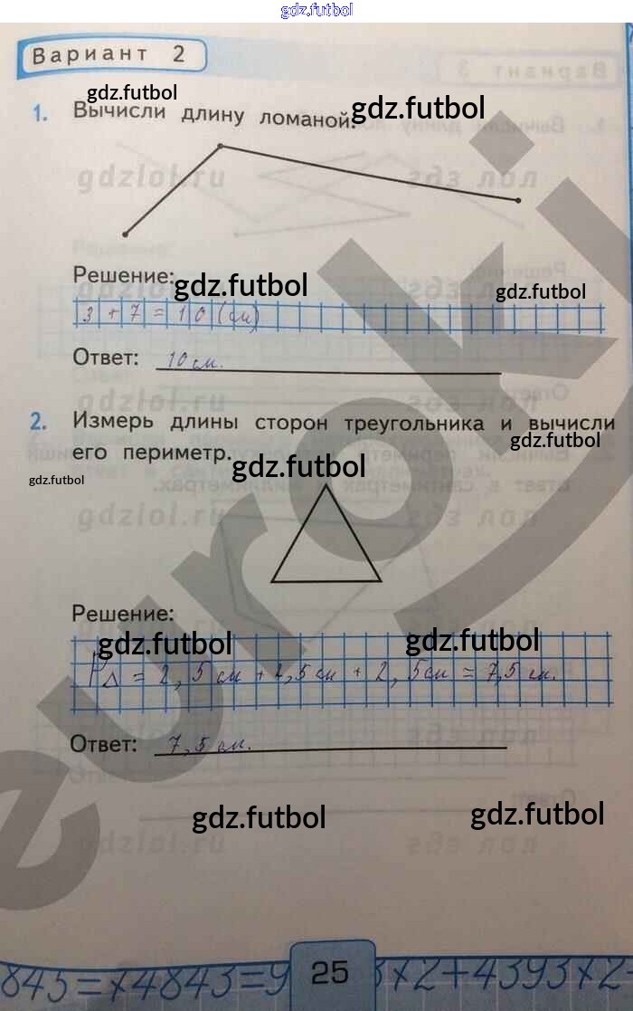 Готовые домашние задания по Математике за 2 класс Рудницкая Контрольные работы УМК 2017 ФГОС - Вычисление длины ломаной и периметра многоугольника Вар-2