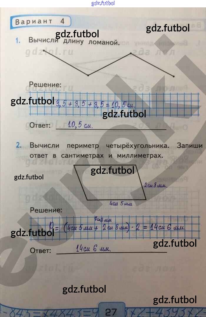 Готовые домашние задания по Математике за 2 класс Рудницкая Контрольные работы УМК 2017 ФГОС - Вычисление длины ломаной и периметра многоугольника Вар-4