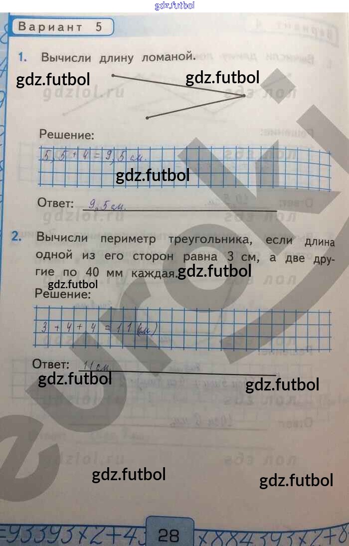 Готовые домашние задания по Математике за 2 класс Рудницкая Контрольные работы УМК 2017 ФГОС - Вычисление длины ломаной и периметра многоугольника Вар-5