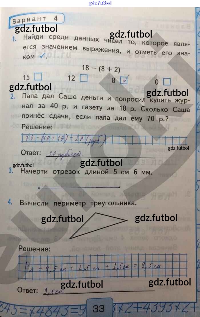 Готовые домашние задания по Математике за 2 класс Рудницкая Контрольные работы УМК 2017 ФГОС - Итоговая контрольная работа Вар-4