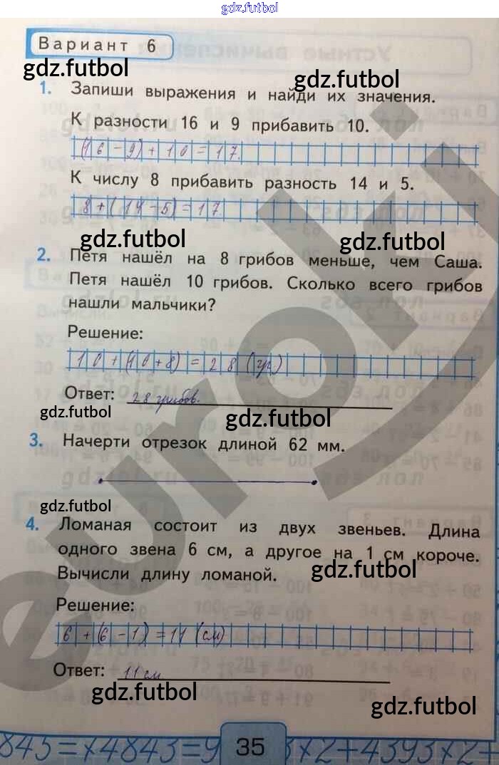 Готовые домашние задания по Математике за 2 класс Рудницкая Контрольные работы УМК 2017 ФГОС - Итоговая контрольная работа Вар-6