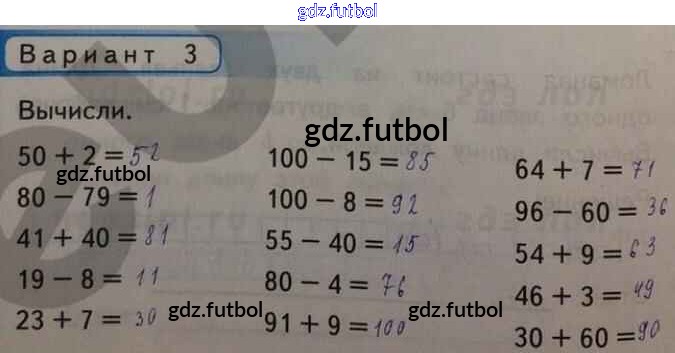 Готовые домашние задания по Математике за 2 класс Рудницкая Контрольные работы УМК 2017 ФГОС - Устные вычисления Вар-3