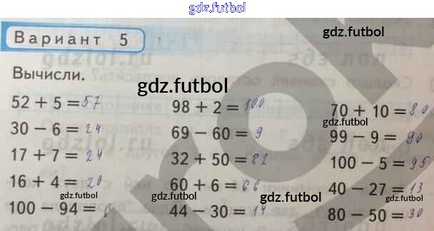 Готовые домашние задания по Математике за 2 класс Рудницкая Контрольные работы УМК 2017 ФГОС - Устные вычисления Вар-5