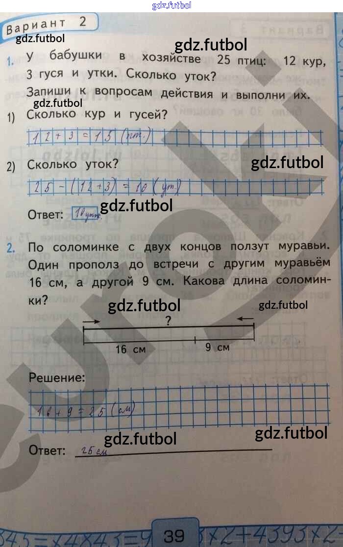 Готовые домашние задания по Математике за 2 класс Рудницкая Контрольные работы УМК 2017 ФГОС - Решение задач Вар-2