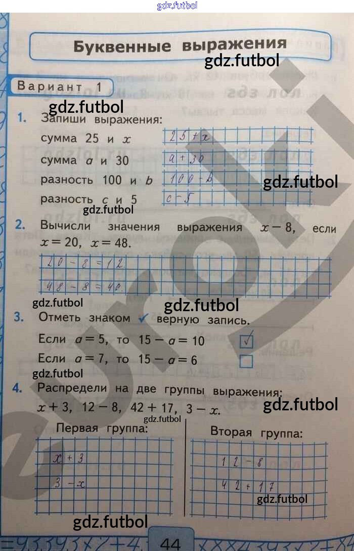 Готовые домашние задания по Математике за 2 класс Рудницкая Контрольные работы УМК 2017 ФГОС - Буквенное выражение Вар-1