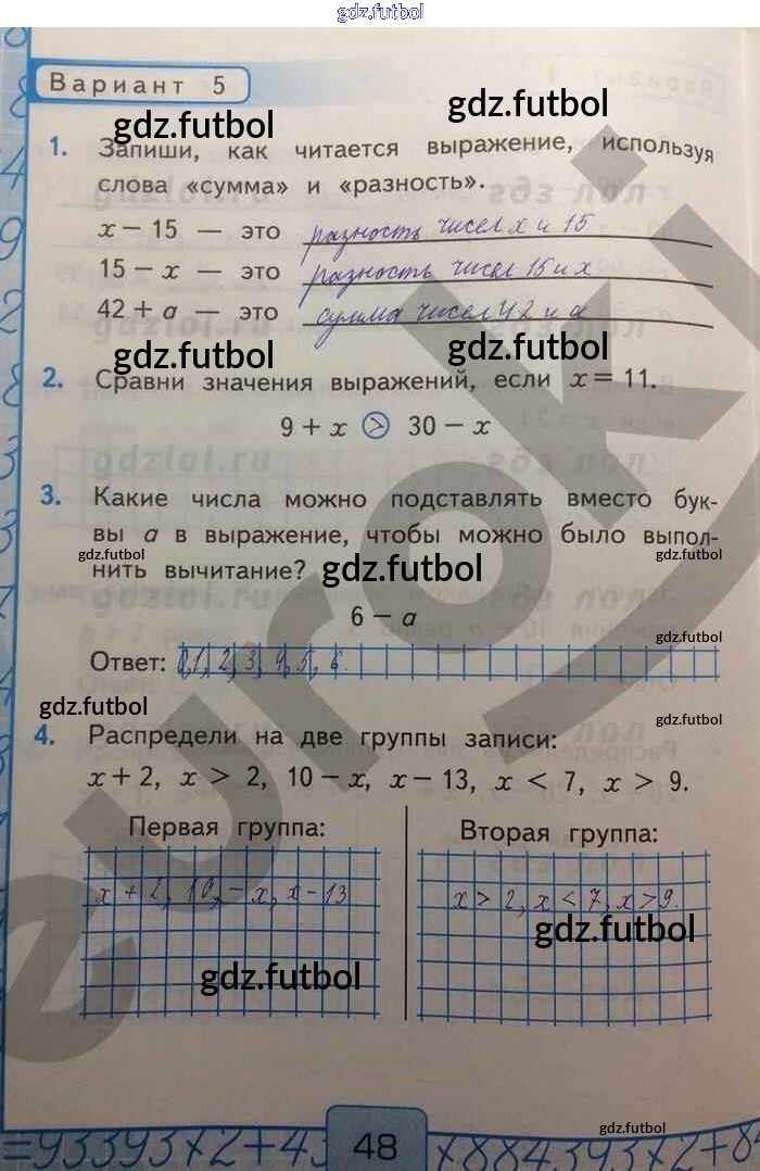Готовые домашние задания по Математике за 2 класс Рудницкая Контрольные работы УМК 2017 ФГОС - Буквенное выражение Вар-5