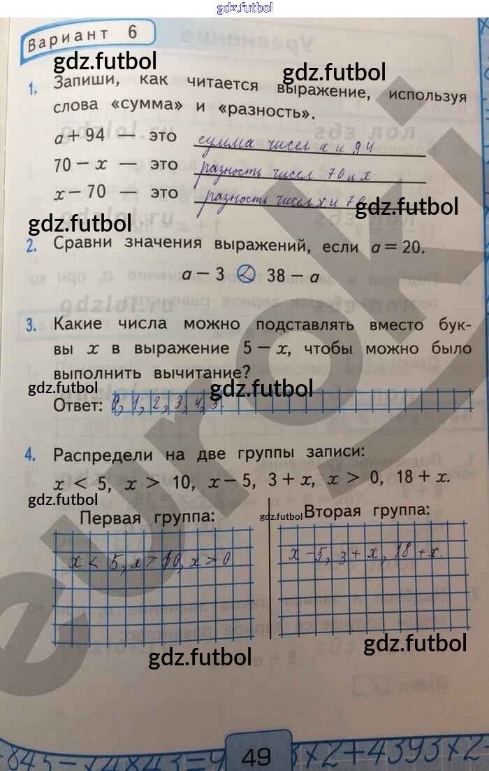 Готовые домашние задания по Математике за 2 класс Рудницкая Контрольные работы УМК 2017 ФГОС - Буквенное выражение Вар-6