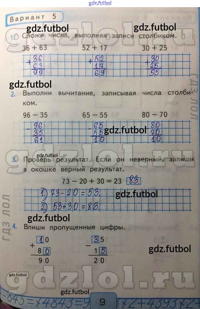 Готовые домашние задания по Математике за 2 класс Рудницкая Контрольные работы УМК 2017 ФГОС - Сложение и вычитание без перехода через десяток Вар-5