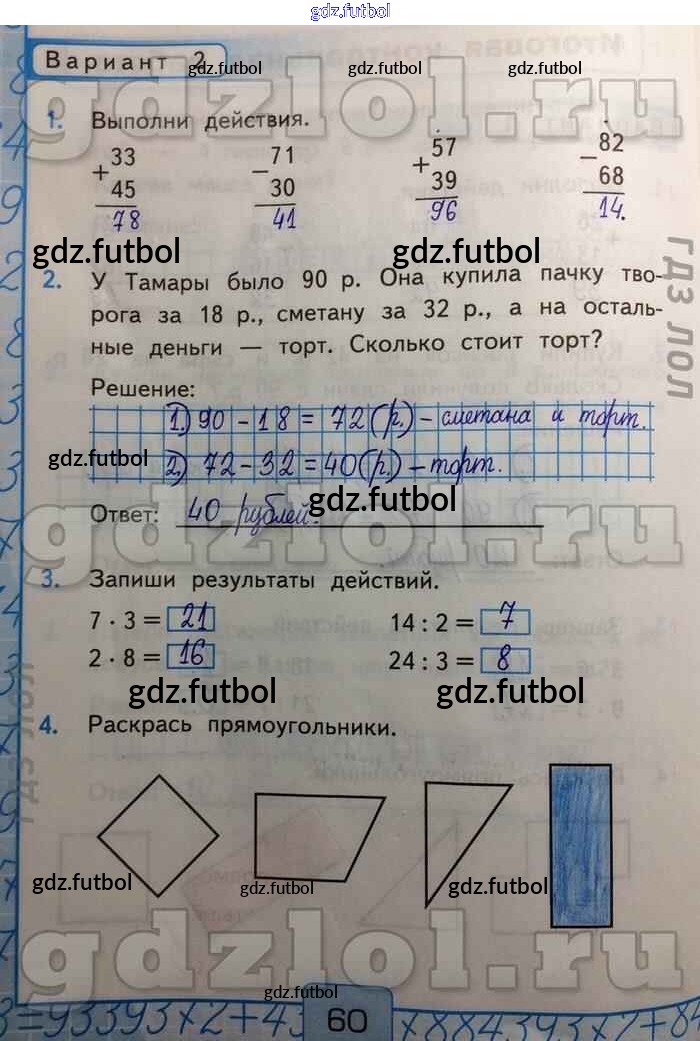Готовые домашние задания по Математике за 2 класс Рудницкая Контрольные работы УМК  2017 ФГОС - Итоговая контрольная работа Вар-2