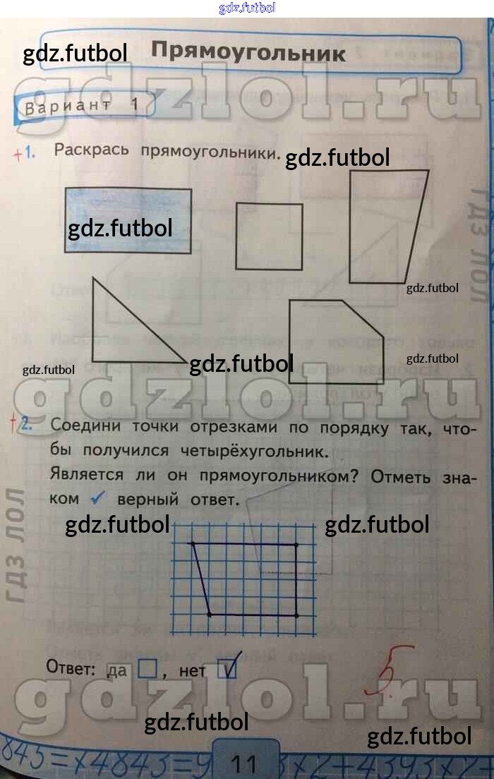 Готовые домашние задания по Математике за 2 класс Рудницкая Контрольные работы УМК 2017 ФГОС - Прямоугольник Вар-1