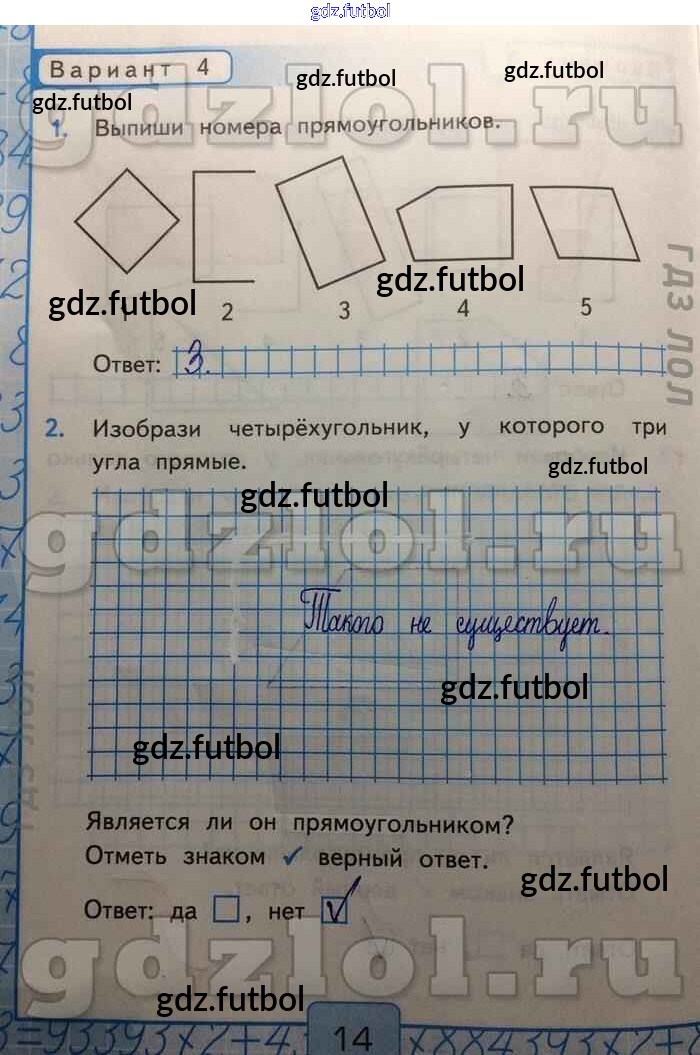 Готовые домашние задания по Математике за 2 класс Рудницкая Контрольные работы УМК 2017 ФГОС - Прямоугольник Вар-4