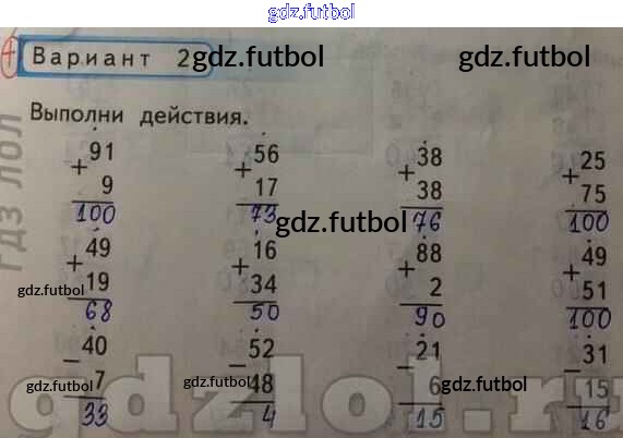 Готовые домашние задания по Математике за 2 класс Рудницкая Контрольные работы УМК 2017 ФГОС - Письменные приёмы сложения и вычитания с переходом через десяток Вар-2