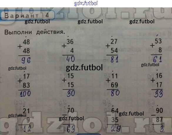 Готовые домашние задания по Математике за 2 класс Рудницкая Контрольные работы УМК 2017 ФГОС - Письменные приёмы сложения и вычитания с переходом через десяток Вар-4