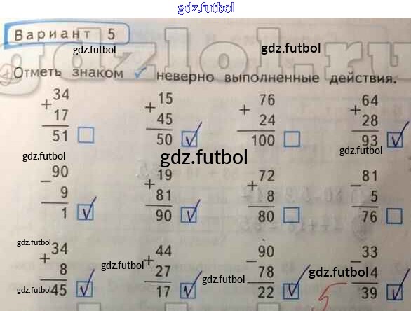 Готовые домашние задания по Математике за 2 класс Рудницкая Контрольные работы УМК 2017 ФГОС - Письменные приёмы сложения и вычитания с переходом через десяток Вар-5
