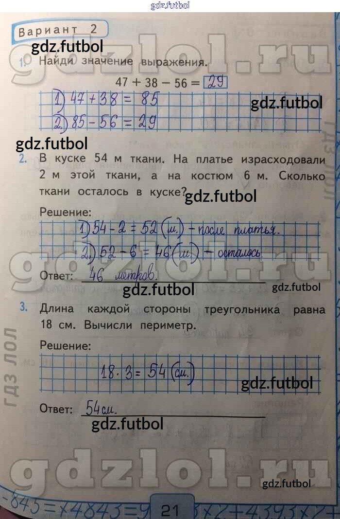 Готовые домашние задания по Математике за 2 класс Рудницкая Контрольные работы УМК 2017 ФГОС - Сложение и вычитание в пределах 100 Вар-2