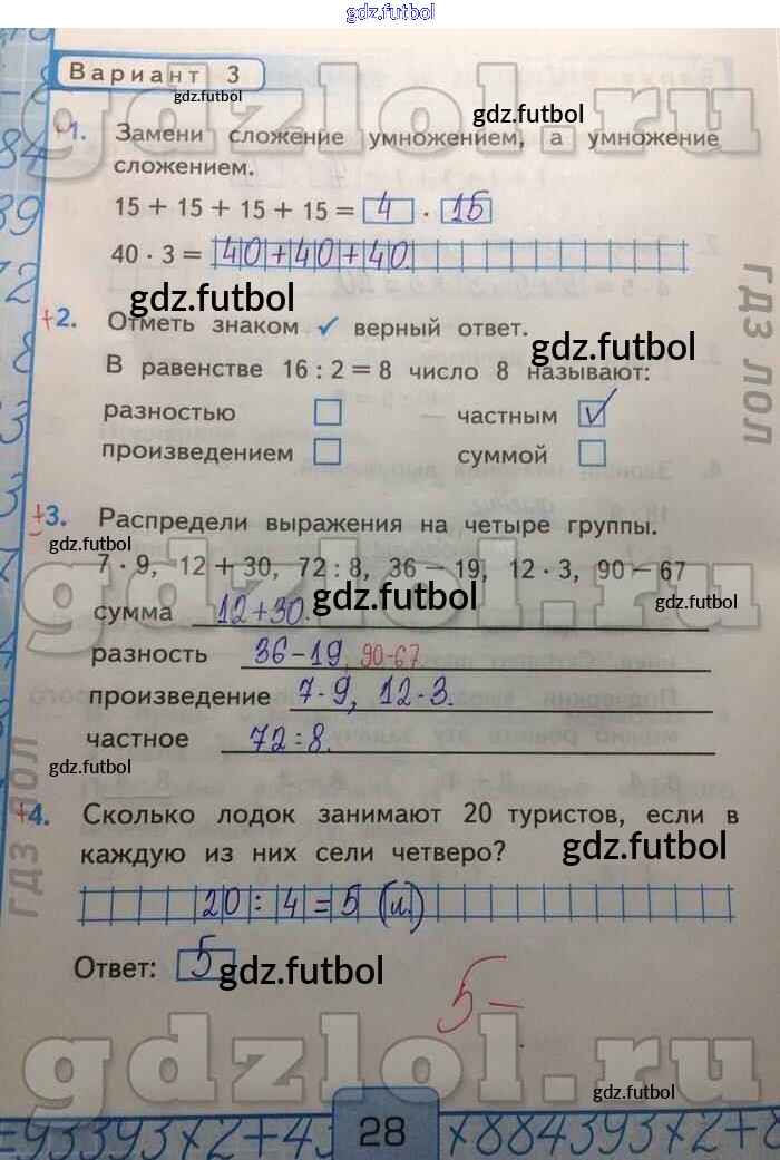 Готовые домашние задания по Математике за 2 класс Рудницкая Контрольные работы УМК 2017 ФГОС - Умножение и деление Вар-3