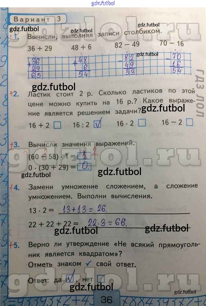 Готовые домашние задания по Математике за 2 класс Рудницкая Контрольные работы УМК  2017 ФГОС - Итоговая контрольная работа Вар-3