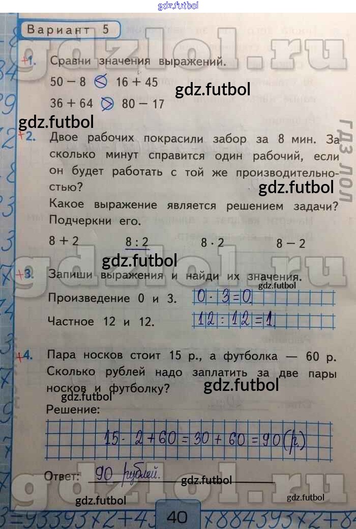 Готовые домашние задания по Математике за 2 класс Рудницкая Контрольные работы УМК 2017 ФГОС - Итоговая контрольная работа Вар-5