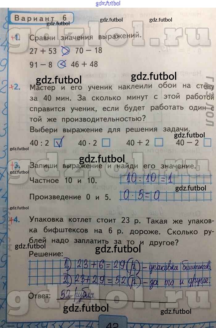 Готовые домашние задания по Математике за 2 класс Рудницкая Контрольные работы УМК 2017 ФГОС - Итоговая контрольная работа Вар-6