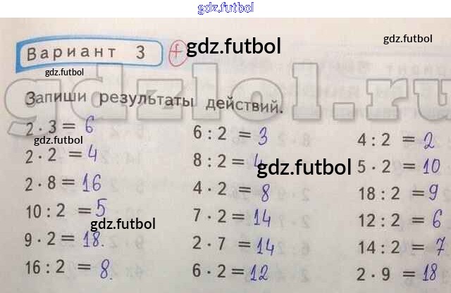 Готовые домашние задания по Математике за 2 класс Рудницкая Контрольные работы УМК 2017 ФГОС - Табличные случаи умножения и деления на 2 Вар-3