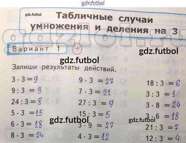 Готовые домашние задания по Математике за 2 класс Рудницкая Контрольные работы УМК 2017 ФГОС - Табличные случаи умножения и деления на 3 Вар-1
