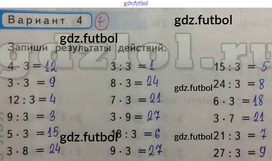 Готовые домашние задания по Математике за 2 класс Рудницкая Контрольные работы УМК 2017 ФГОС - Табличные случаи умножения и деления на 3 Вар-4