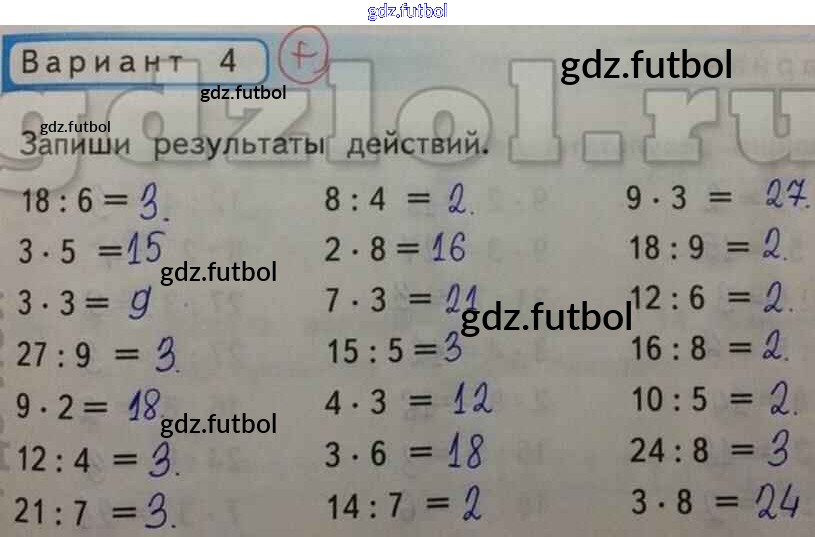 Готовые домашние задания по Математике за 2 класс Рудницкая Контрольные работы УМК 2017 ФГОС - Разные случаи табличного умножения и деления Вар-4
